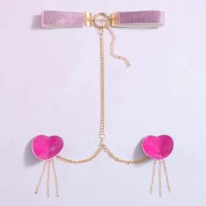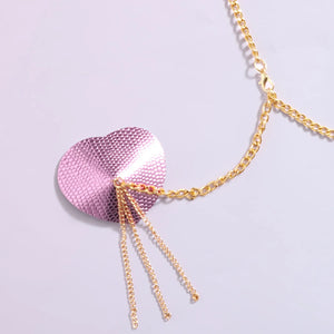 Home RAVE PASTIES OUTFIT, Heart Shape Tassel Leather Nipple Cover with Metal Chain