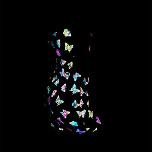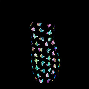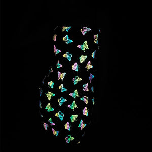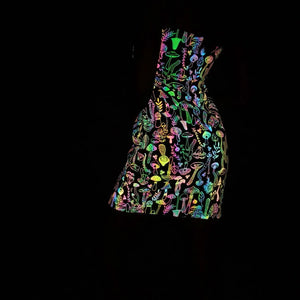 The mushroom print is crafted with high-quality reflective material that reacts to camera flashes, LED lighting, and festival strobes. The result? A dazzling multi-color glow that transforms your look from fun to unforgettable in seconds.
